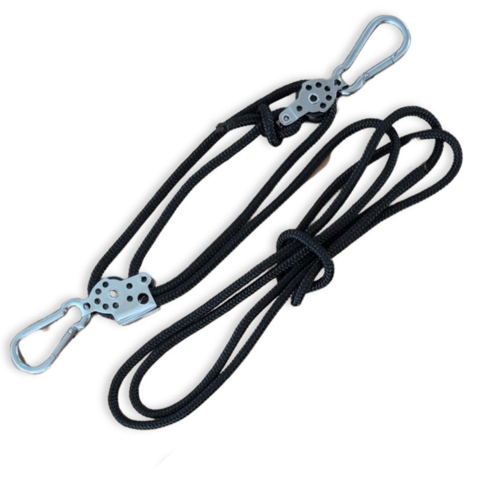 Le système de tension long est inspiré de l’accastillage nautique et permet d’ajuster facilement la tension de la voile tout en offrant une grande amplitude de réglage.